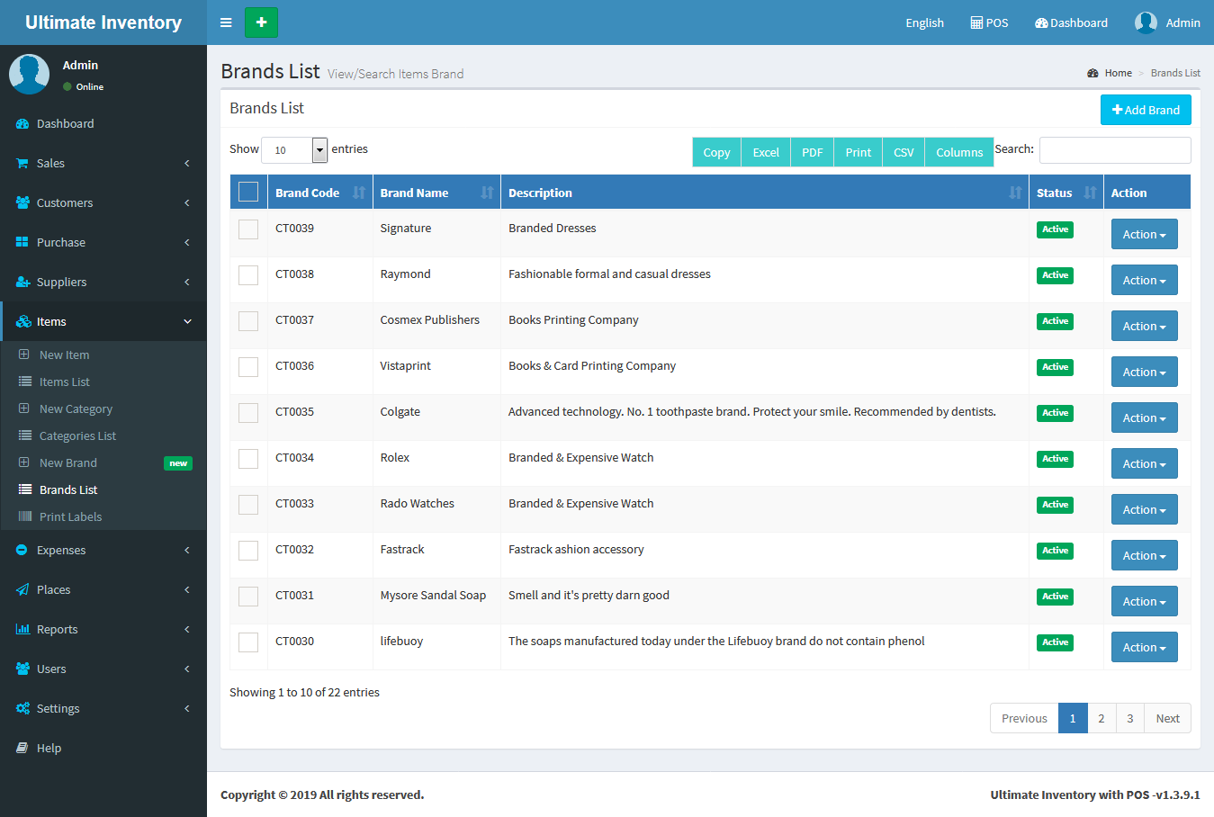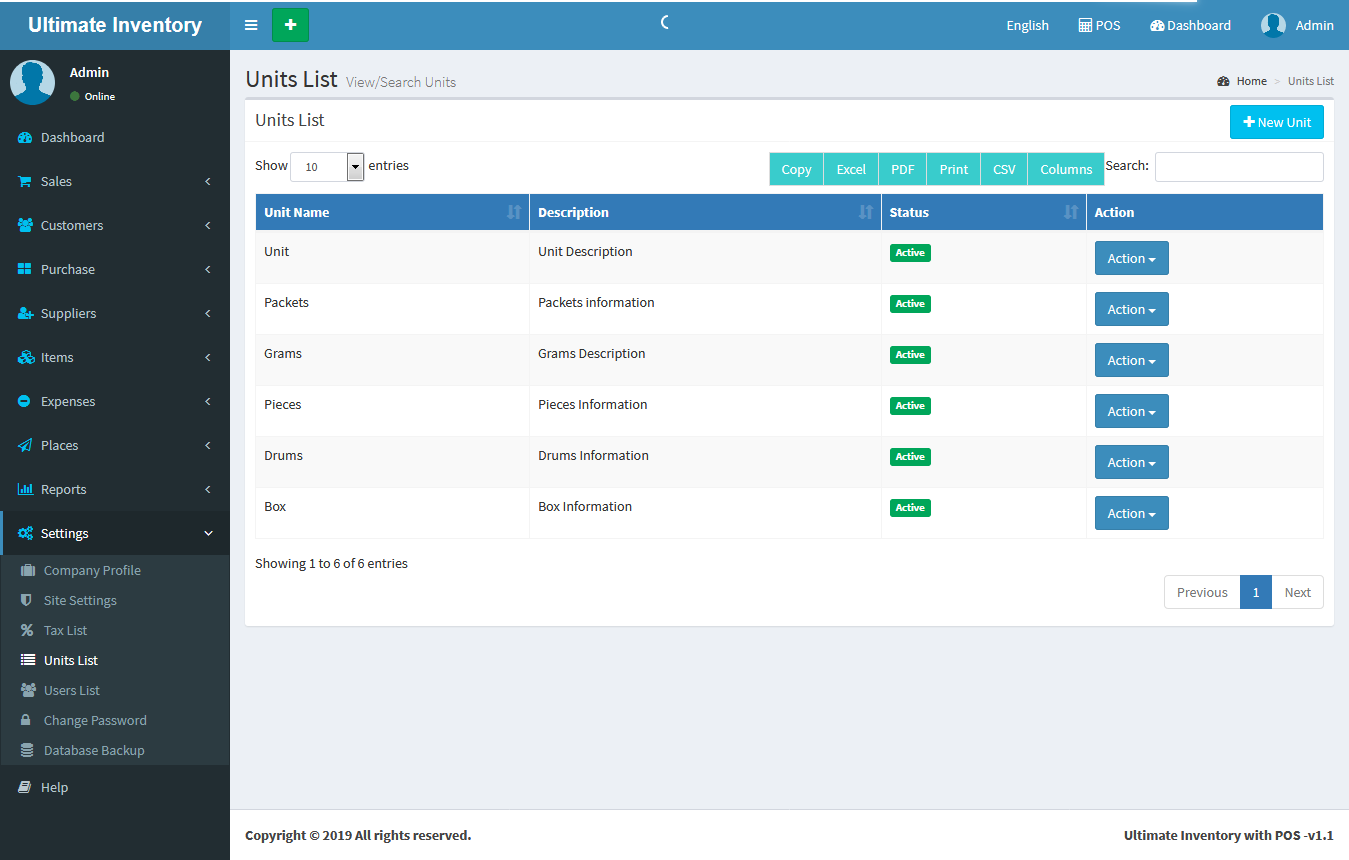 Inventory with POS is a web application software user can track Items & Stock Items, Manage Suppliers, Manage Customers, Items Categories, Sales, Purchase, Manage users and get all the reports which are require to your office and many more features.