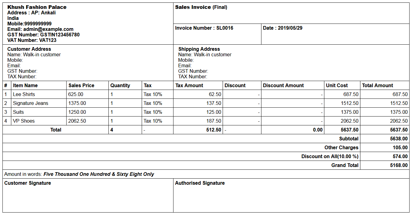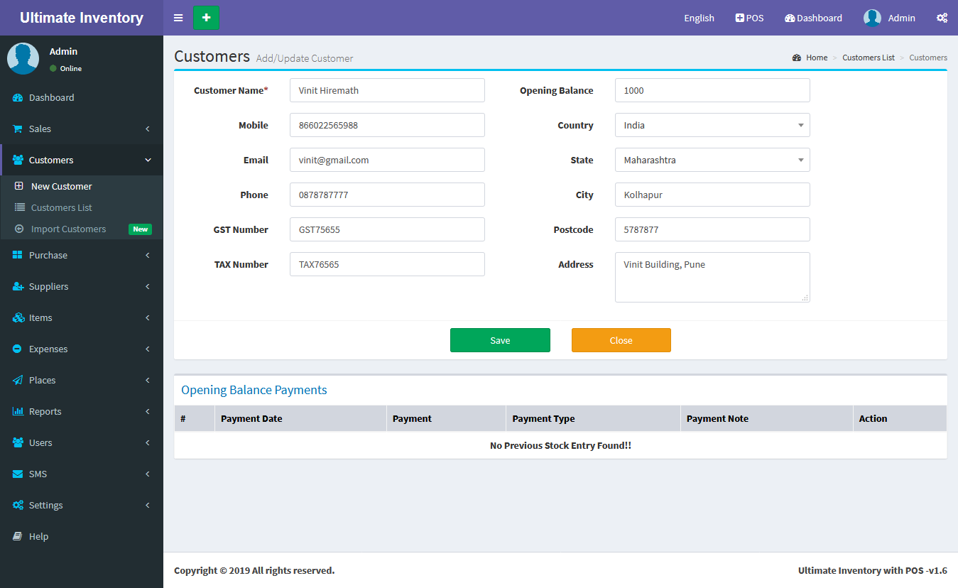 Adding a Customers it's a very easy task. Enter Customer name, Mobile, Phone, Email, GST Number, TAX Number,